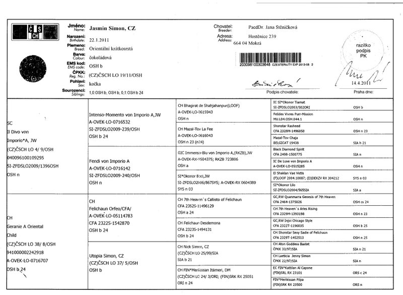 Matka/mother: CH Geranie A Oriental Child (OSH b 24)